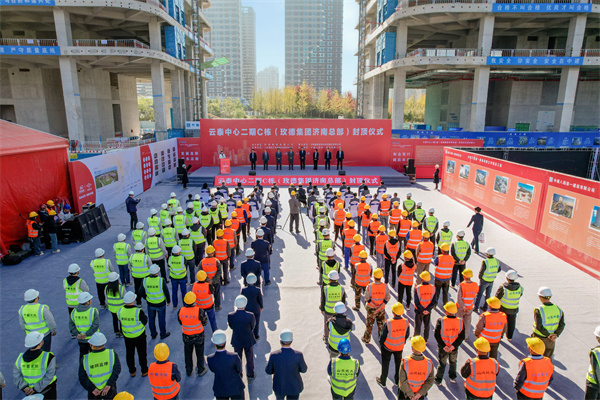 2024年10月23日,旺财28-科技赋能场景,让娱乐更有趣!-pgwc济南总部暨云泰中心二期C栋封顶仪式顺利举行。