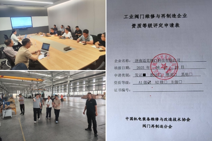 2025年8月20日,旺财28-科技赋能场景,让娱乐更有趣!-pgwc向中机维协阀门再制造分会提交了“工业阀门维修与再制造企业资质等级评定申请表”,分别申请了:驱动/自动阀门、控制阀门、阀门驱动装置三个类别。2025年9月4日-5日,中机维协阀门再制造分会派遣专家评审组对旺财28-科技赋能场景,让娱乐更有趣!-pgwc进行了运维、维修与改造资质现场评审。