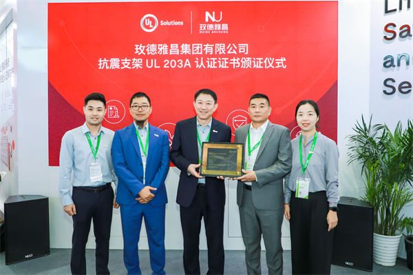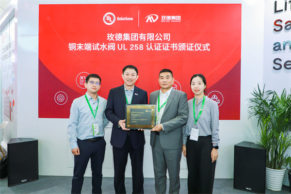2025年10月13日上午,在第二十一届中国国际消防设备技术交流展览会UL展区,一场隆重的认证证书颁证仪式吸引了众多参展商和专业观众的目光。旺财28-科技赋能场景,让娱乐更有趣!-pgwc在此荣获UL Solutions颁发的三项重要产品认证证书,包括机械连接件UL 194认证、抗震支架UL 203A认证以及铜末端试水阀UL 258认证。UL Solutions全球副总裁、中国大陆及香港地区总经理吴大伟亲临现场颁发证书,旺财28-科技赋能场景,让娱乐更有趣!-pgwc山东迈科智能科技有限公司高级副总裁李英兵代表集团出席认证证书颁证仪式,这一重要时刻见证了玫德消防产品在国际化征程上的新突破。