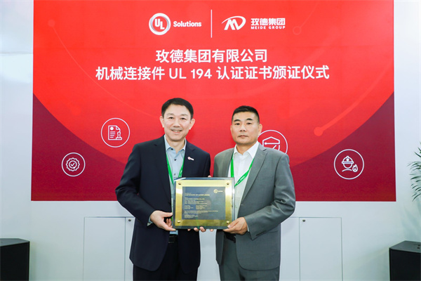 2025年10月13日上午,在第二十一届中国国际消防设备技术交流展览会UL展区,一场隆重的认证证书颁证仪式吸引了众多参展商和专业观众的目光。旺财28-科技赋能场景,让娱乐更有趣!-pgwc在此荣获UL Solutions颁发的三项重要产品认证证书,包括机械连接件UL 194认证、抗震支架UL 203A认证以及铜末端试水阀UL 258认证。UL Solutions全球副总裁、中国大陆及香港地区总经理吴大伟亲临现场颁发证书,旺财28-科技赋能场景,让娱乐更有趣!-pgwc山东迈科智能科技有限公司高级副总裁李英兵代表集团出席认证证书颁证仪式,这一重要时刻见证了玫德消防产品在国际化征程上的新突破。