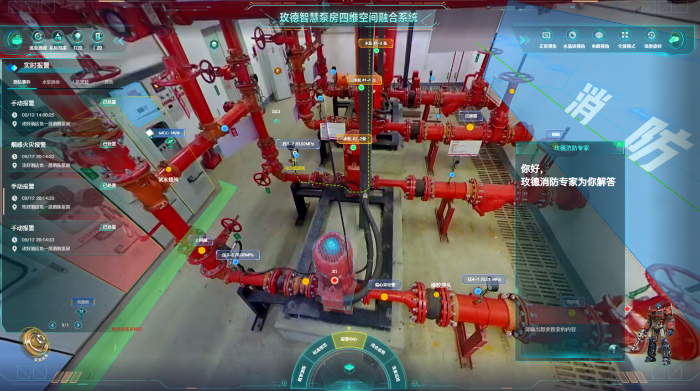 玫德智慧泵房四维空间融合系统,依托人工智能、AR/VR及720°全景视频技术深度融合,构建起一套全方位、全流程、全维度的泵房智能管理体系,更是AR+全景视频技术在流体输送领域的首例实战应用,也是AI技术在水泵房场景中的首例深度应用,开创了智慧消防水泵房场景应用的新范式。