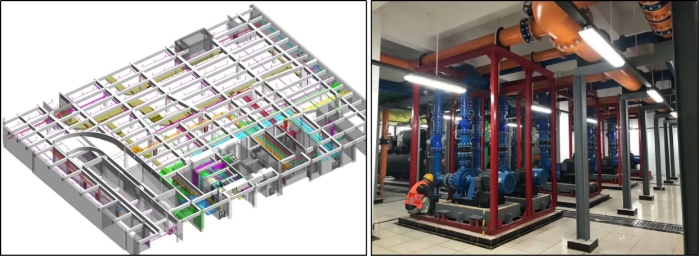 该主体园区是目前ZGYD规模最大的基础设施建设项目,其冷源配套工程预制项目,面临工期紧张、场地受限、禁止明火作业等多重挑战。玫德快速响应,以“BIM+预制+数字化”一体化方案精准破局,既满足安全要求,又显著压缩工期,圆满完成项目交付,实现质量、效率与安全的三重提升。